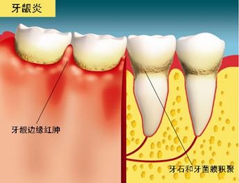 1、刷牙时刷毛上有血迹,咬食物时食物上有血迹,说明有牙龈炎。