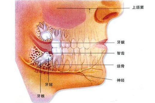 ③智齿与颊侧粘膜组织常常接触紧密,其龈颊沟内积存的食物不易被清除,常引起智齿颊侧软组织发炎。